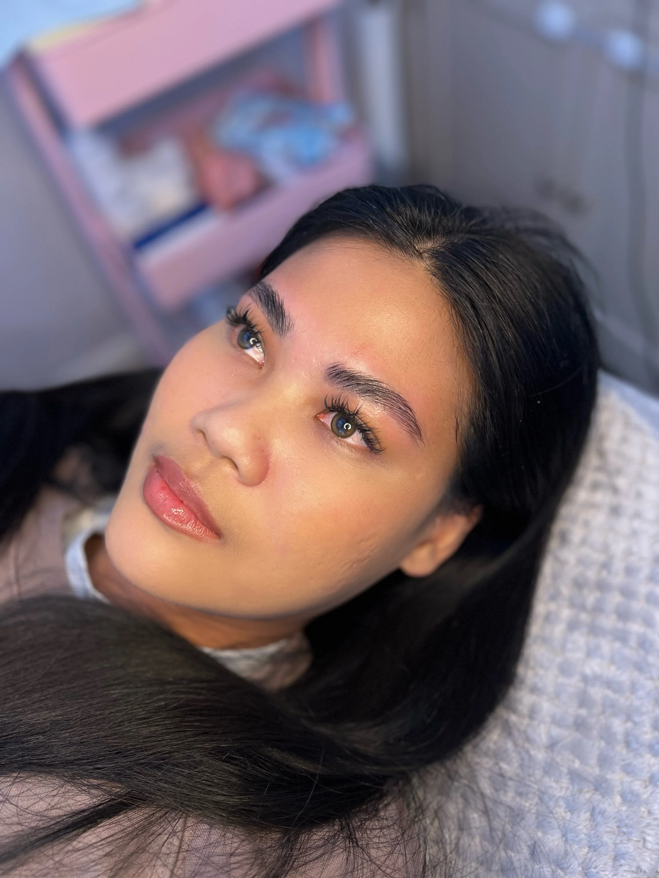 Eyebrow lamination is a popular cosmetic brow procedure that lifts and smooths brows with the goal of creating sleeker, neater and fuller-looking eyebrows. This treatments lasts up to 8-10 weeks. Patch test required.